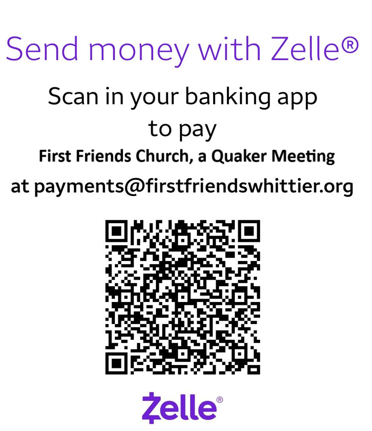 - 3: Send money by Zelle, send to payments@firstfriendswhittier.org